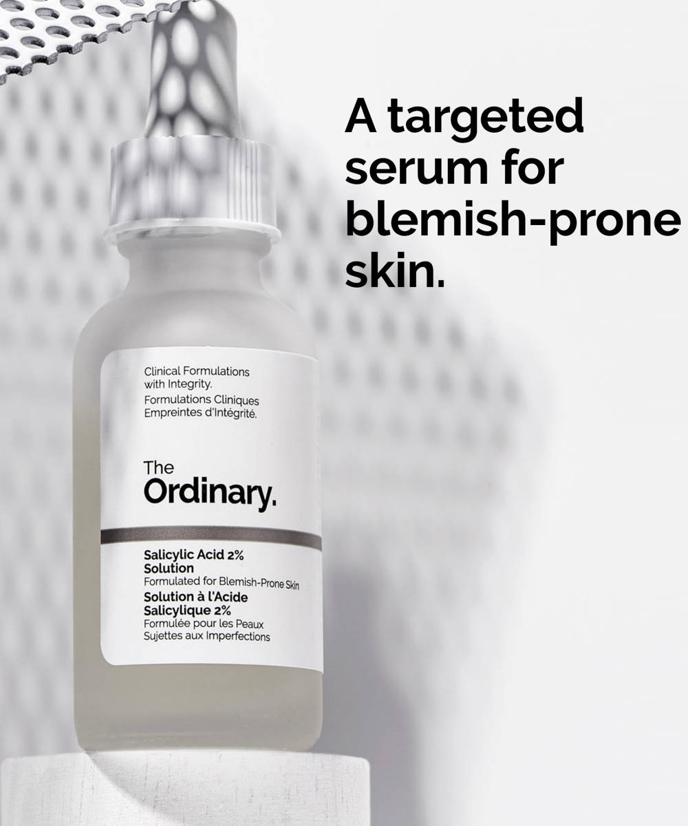 - محلول حمض الساليسيليك 2% 30 مل - يقشر بلطف الجدران الداخلية للجلد، ويعمل محلول حمض الساليسيليك هذا على تنظيف البشرة وتنقيتها. لاستخدامه مباشرة على العيوب فقط، يقلل هذا الحمض القوي من الاحمرار والالتهاب بشكل واضح من خلال استهداف المسام المحتقنة.