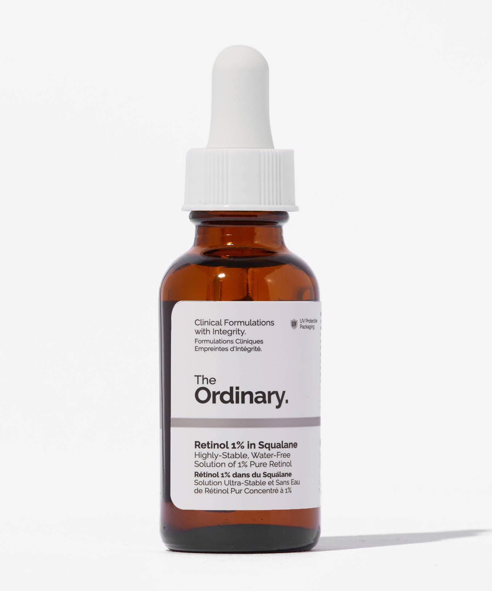- يرجى ملاحظة: يمكن أن يسبب الريتينول 1% في السكوالين احمرارًا وتهيجًا وتقشيرًا خلال الأسابيع القليلة الأولى من الاستخدام. لتقليل الآثار الجانبية الأولية، قم بتخفيفه قبل الاستخدام.