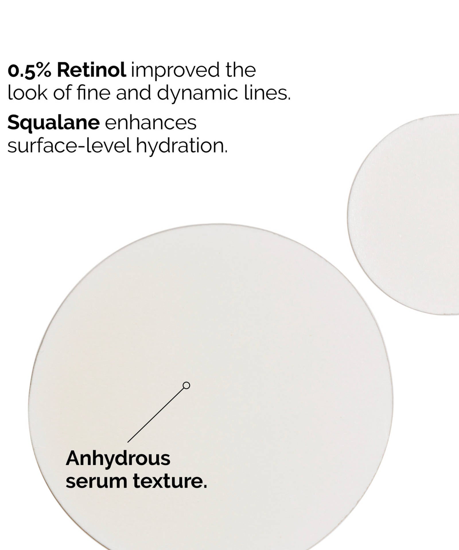 Designed to minimise fine lines and reduce the signs of aging, Retinol 0.5% In Squalene is a water-free, solution that should be used daily as part of your evening skincare regime. Thin and lightweight, use sparingly to build skin’s retinol tolerance and create effective results.