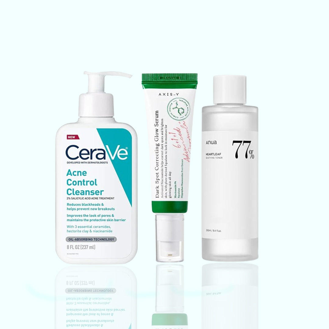 Cerave acne control cleanser+axis y dark spot correcting serum+Anua heatleaf toner 77%