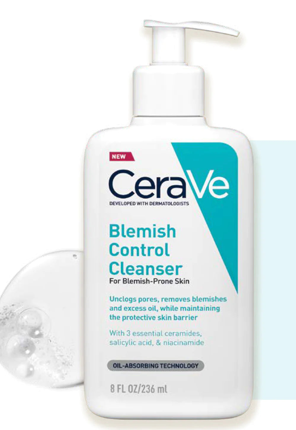 - Formulated with an oil-absorbing technology using Hectorite Clay, CeraVe Blemish Control Cleanser helps remove dirt and excess oil, to minimise shine.